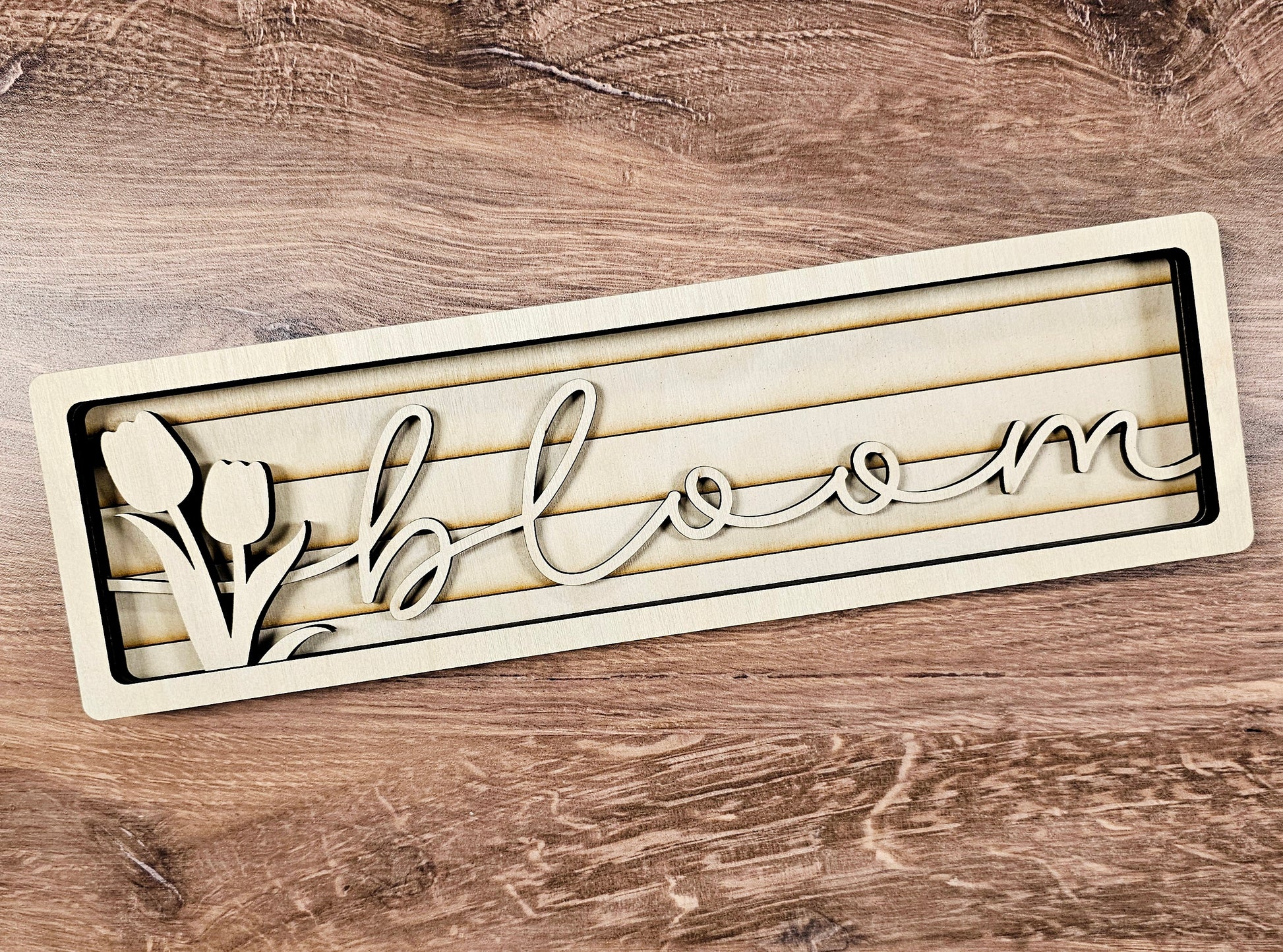 Add a touch of charm and inspiration with this freestanding Bloom wooden sign. Its chunky design makes it perfect for shelves, mantels, or desk.