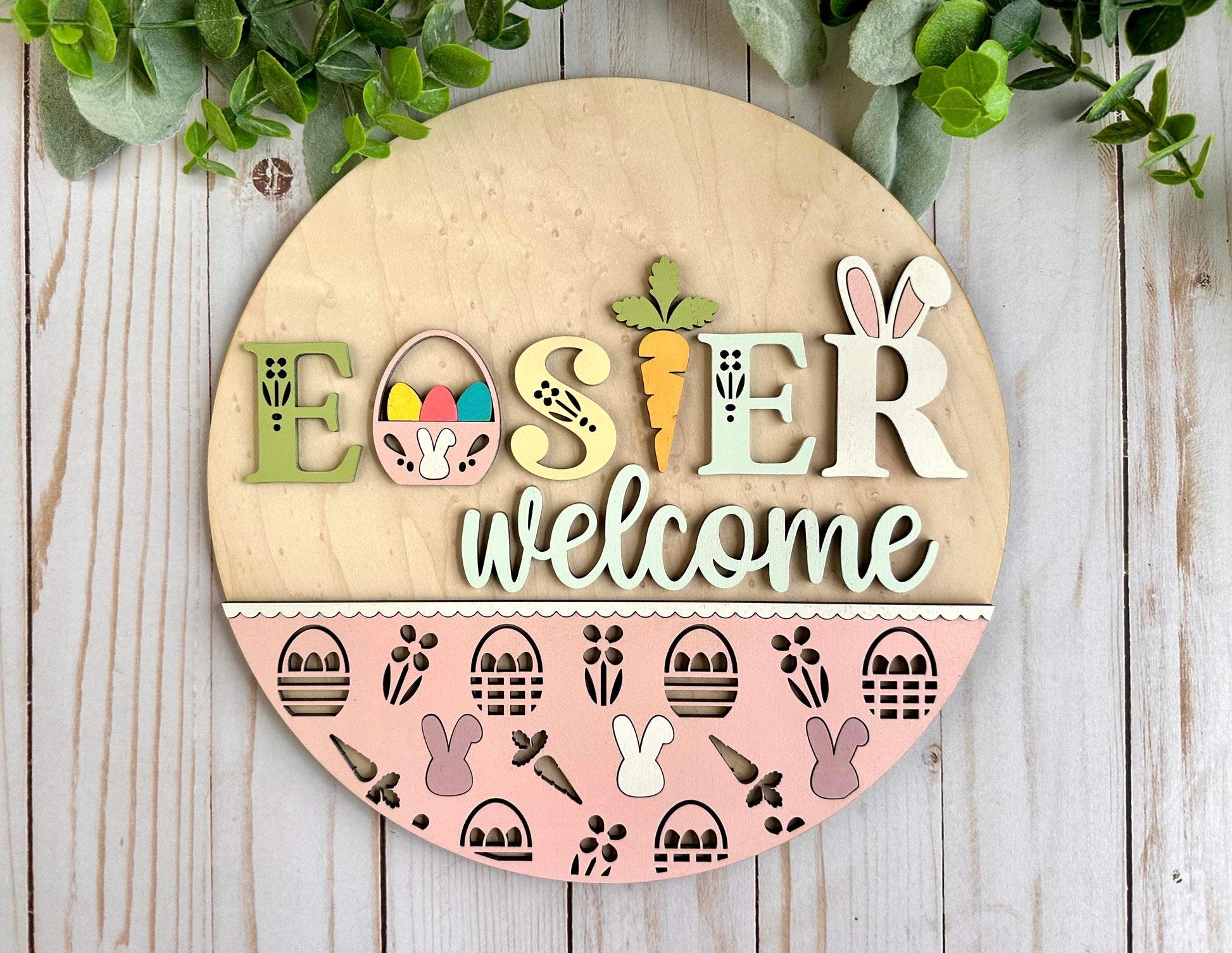 Celebrate the season with this charming Easter welcome sign! Featuring a warm greeting, its's perfect for front doors, entryways, or indoor decor. A delightful way to welcome guest and add a touch of spring to your home!
