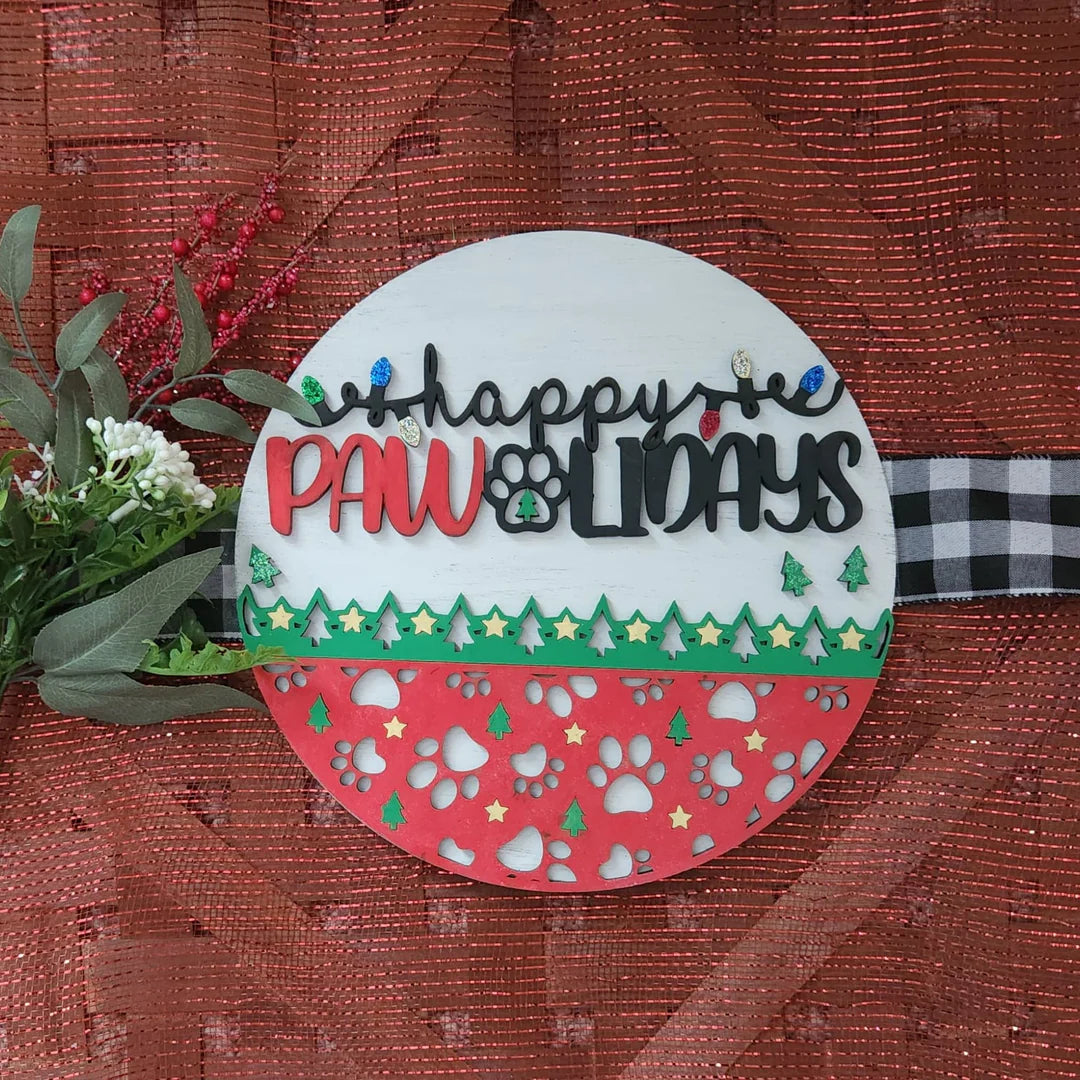 Celebrate the holiday season with our Happy Pawlidays sign! Perfect for pet lovers, this festive sign is a great addition to any home. Show your love for your furry friends this season with the Happy Pawlidays sign.