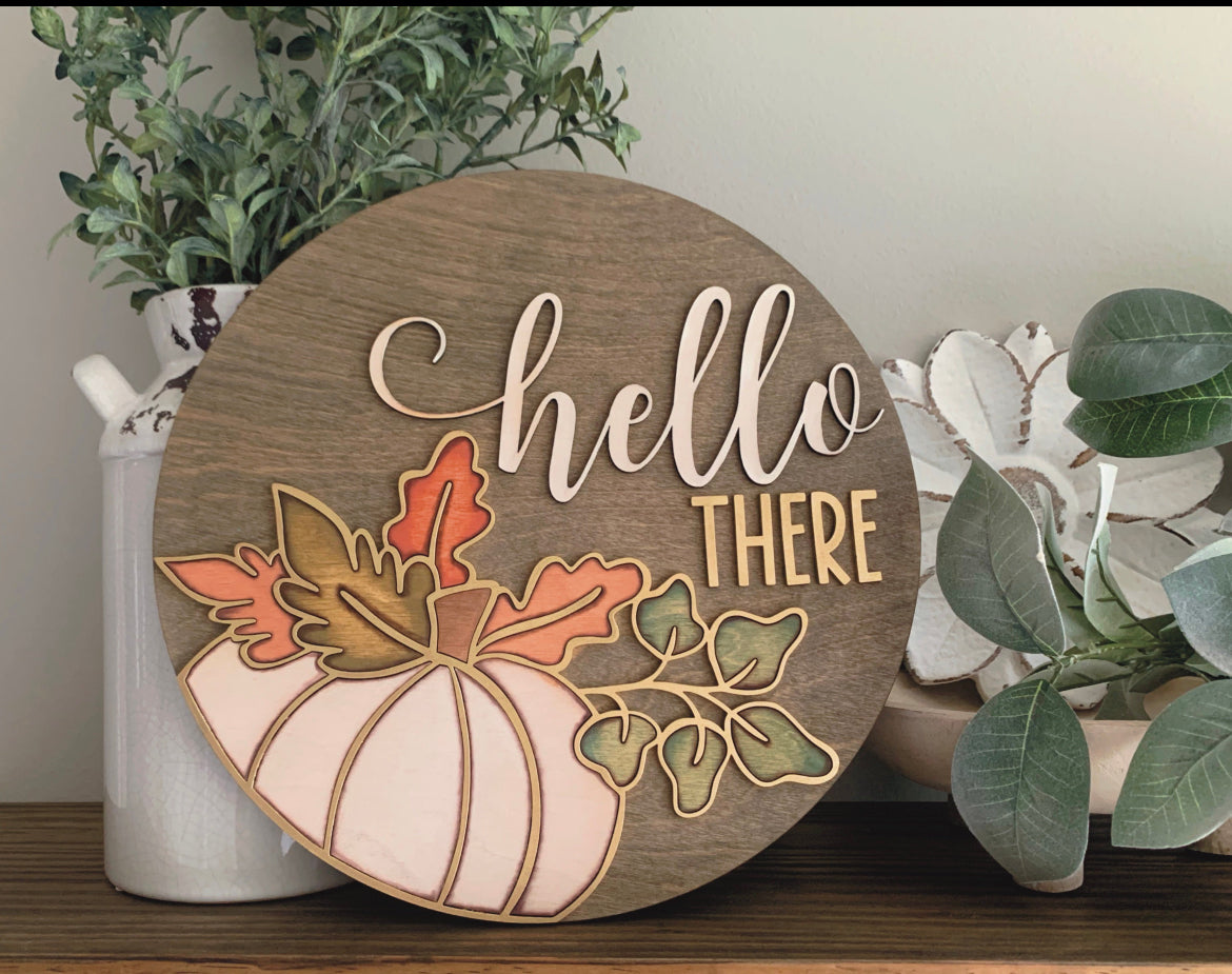 Introducing the "Hello There" sign, available in 11, 15, and 18 inches. Featuring a charming pumpkin design, this elegant piece adds a touch of sophistication to any space. Perfect for welcoming guests or adding a stylish accent to your decor. Elevate your home with this exclusive accessory.