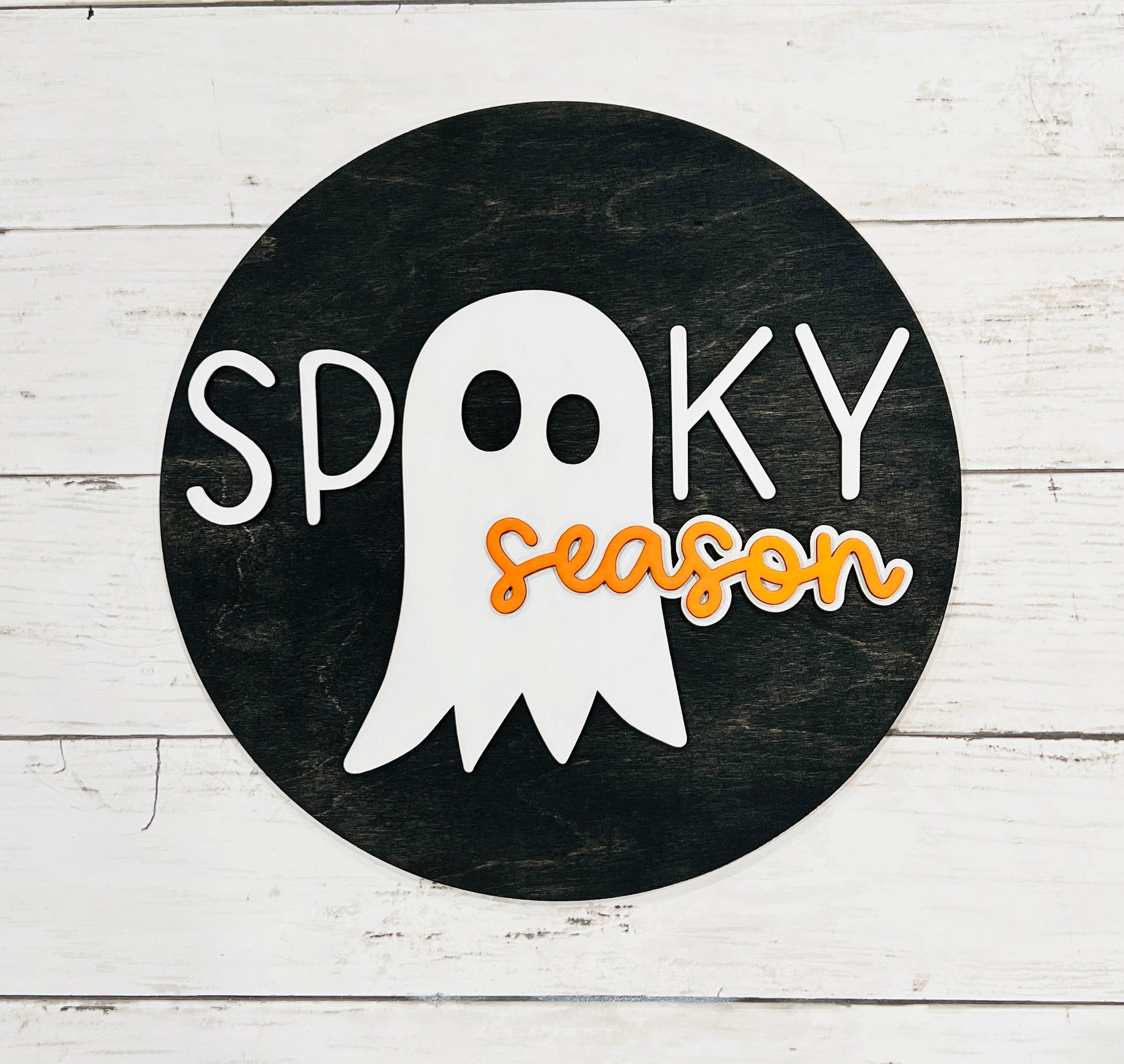 Introducing Spooky Season ghost sign, the must-have decoration for the Halloween season! This sign adds the perfect spooky touch to any home or party. With its eerie design, it's sure to impress and create a frightfully fun atmosphere. Don't miss out on this must-have item for a hauntingly good time.