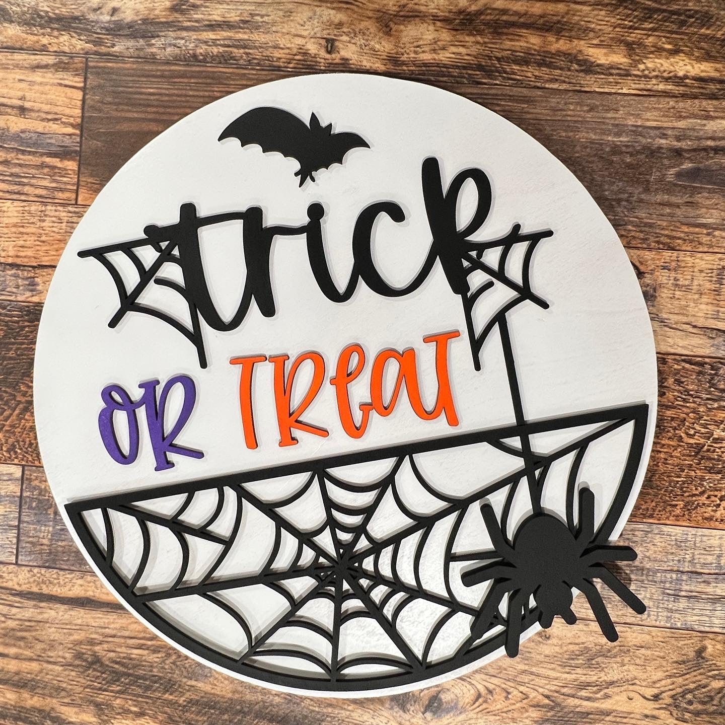 Get into the Halloween spirit with Trick or Treat sign! Perfect for adding a spooky touch to your home decor, this sign is sure to attract trick-or-treaters. Hang it on your front door or display it in your window to let everyone know you're ready for some Halloween fun!